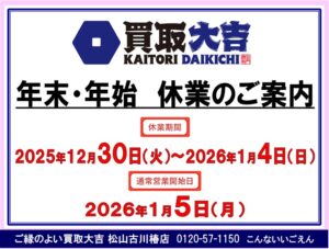 いつも買取大吉松山古川椿店をご利用いただきありがとうございます。